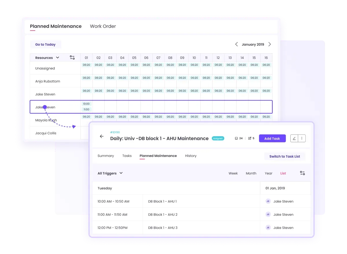For example, the PPM schedule for the school's HVAC system displays the maintenance due dates for each asset, all relevant tasks, and all needed resources.