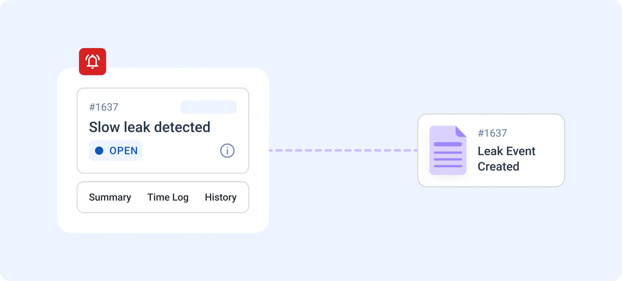 Capture multiple actions—from temporary fixes to permanent repairs under a single leak event, maintaining consolidated history.