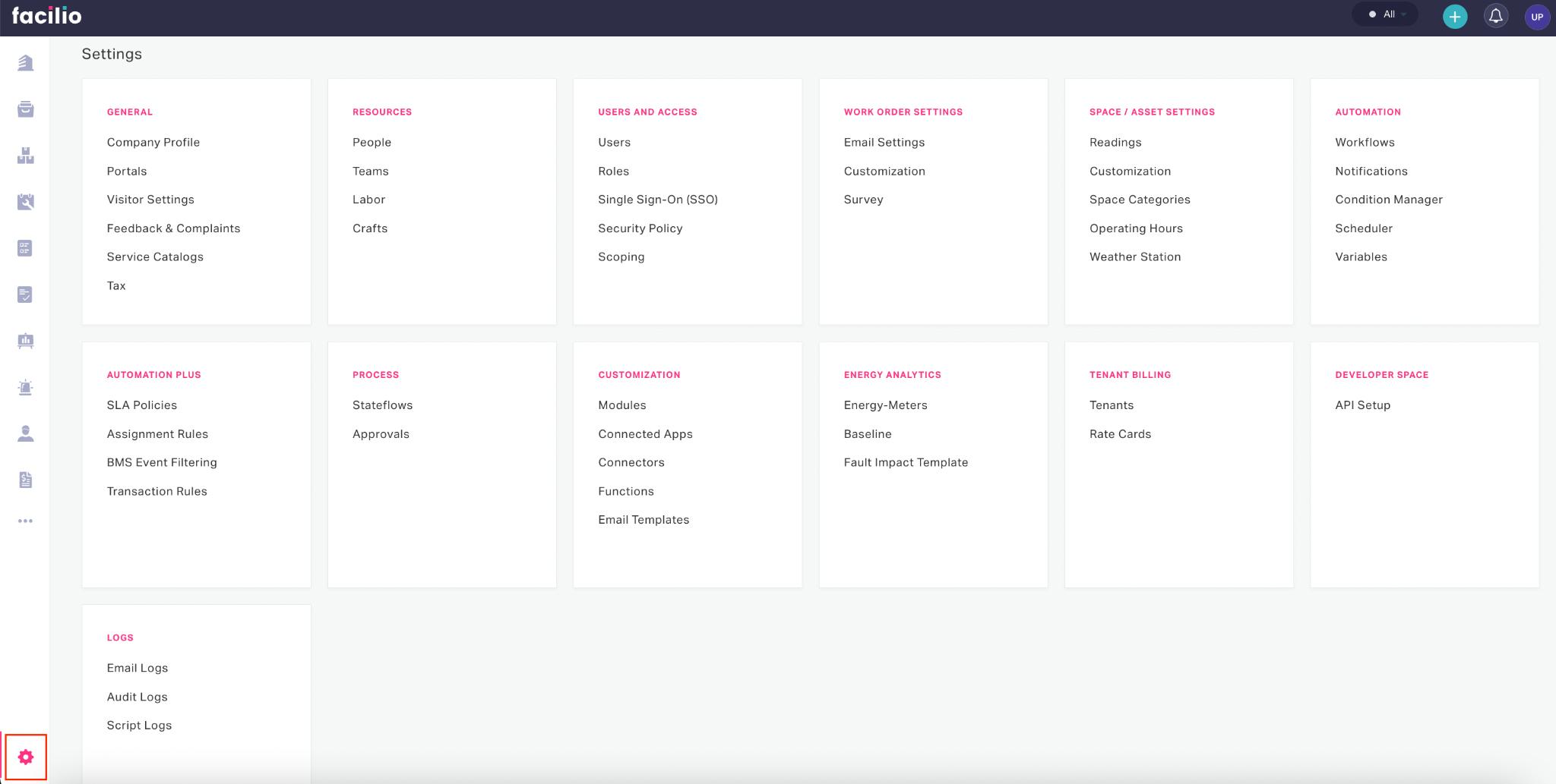 The Admin guide is intended for both the facility managers and engineers who are responsible for configuring the administrator settings of Facilio modules for any organization.