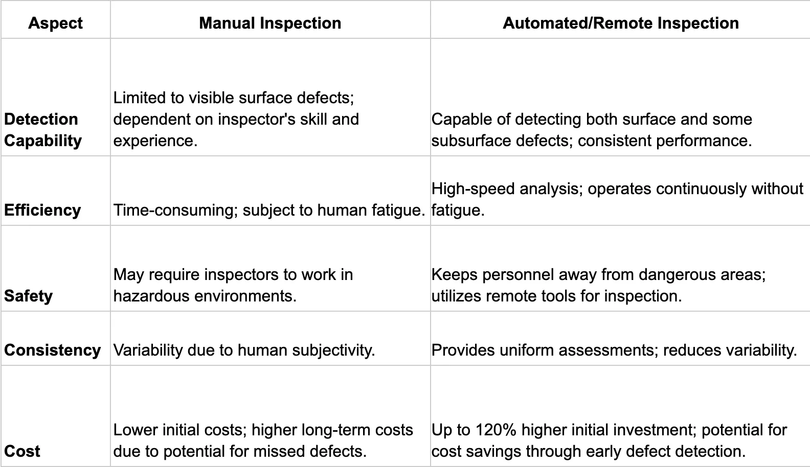 - Limited to surface-level issues: Traditional methods often miss internal or subsurface defects, focusing only on visible problems.