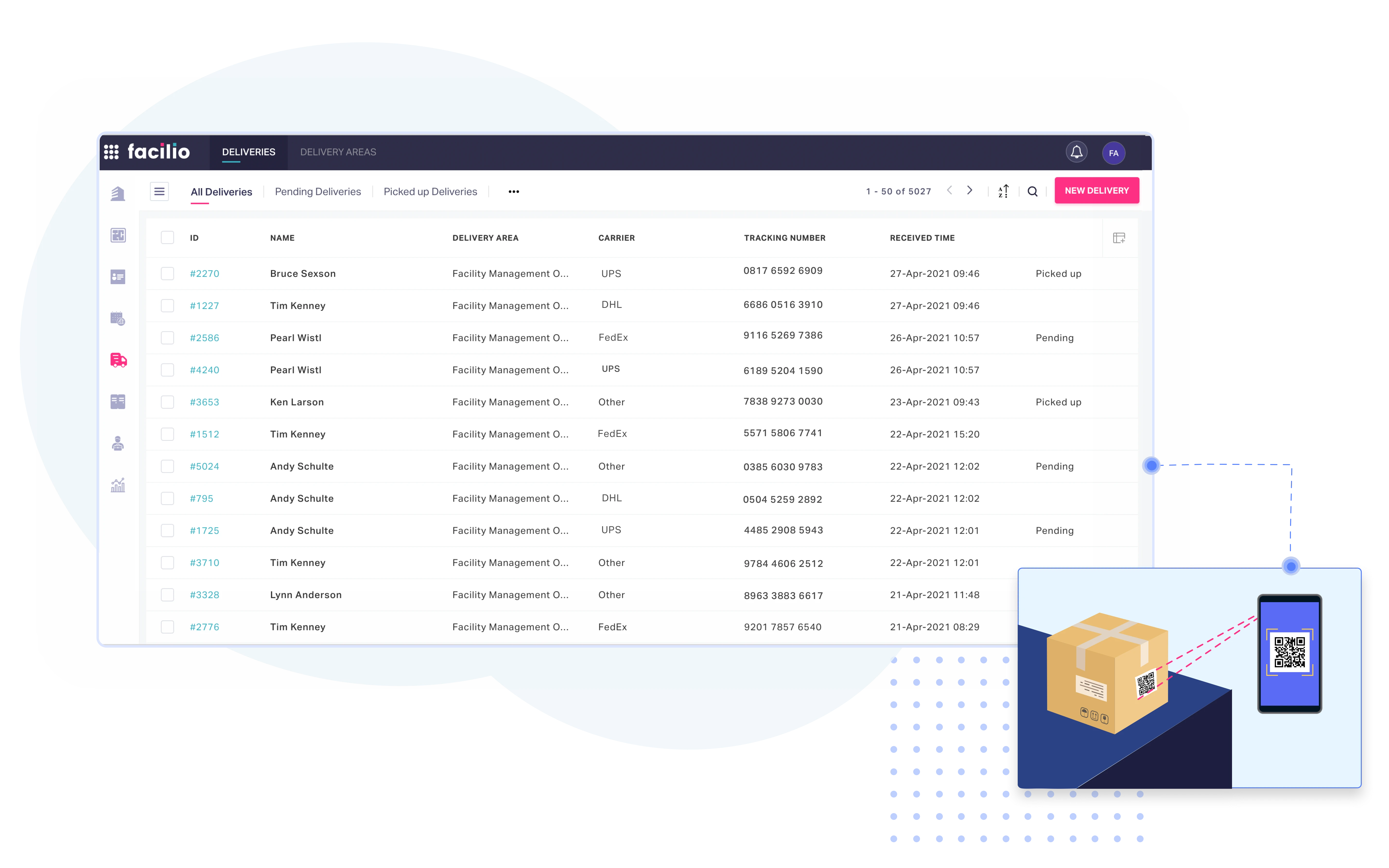 Facilio’s OCR-enabled mobile app enhances your mail room management by automating notifications and reminders, removing mundane manual grunt work. Quickly scan package labels to capture the right employee information and send out package details and the collection point. Employees can also confirm package collection via a mobile app.