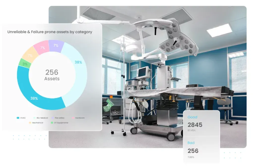 Facilio's healthcare CMMS helps hospitals maintain medical equipment, like OR lights and tables, by prioritizing preventive maintenance. Using equipment health scores, it spots when things might need fixing, prolonging asset lifecycle.