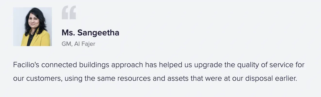 Here's what the General Manager at Al Fajer, Ms. Sangeetha had to say about maintenance management with Facilio -