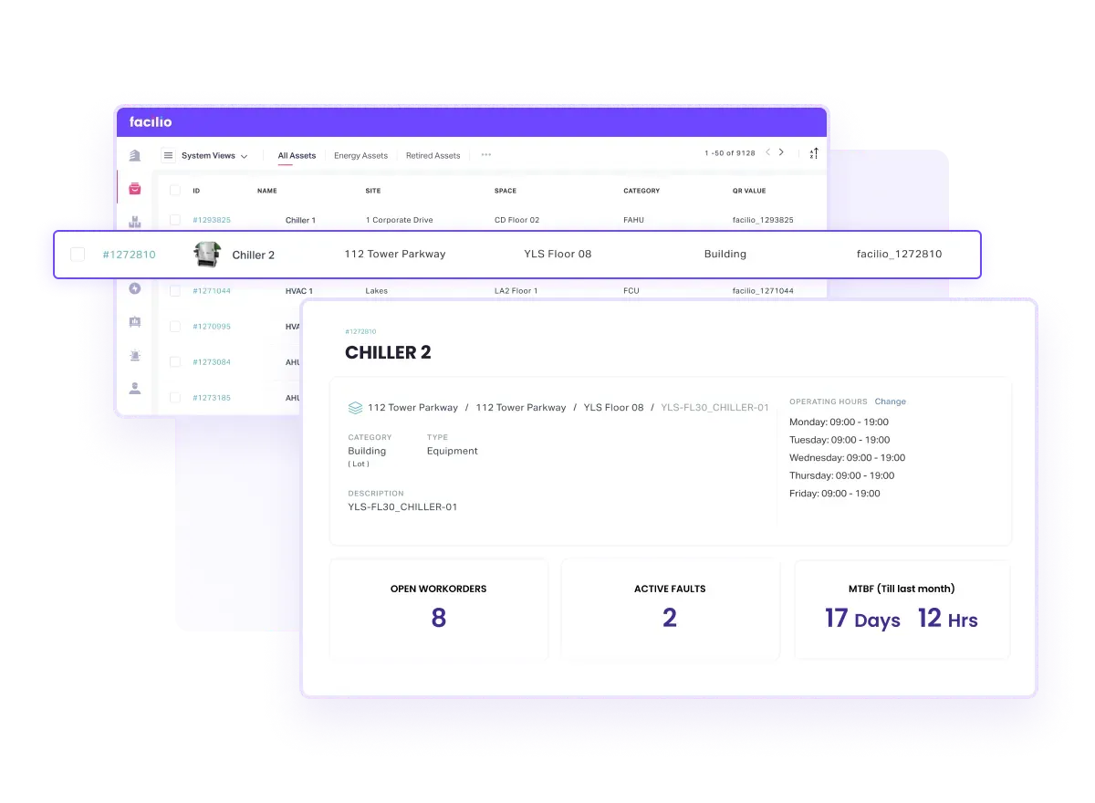 Facilio, for instance, gives you information about the who, what, when, and where of every asset covered. With just a click, you can pull up an asset's entire life cycle story.