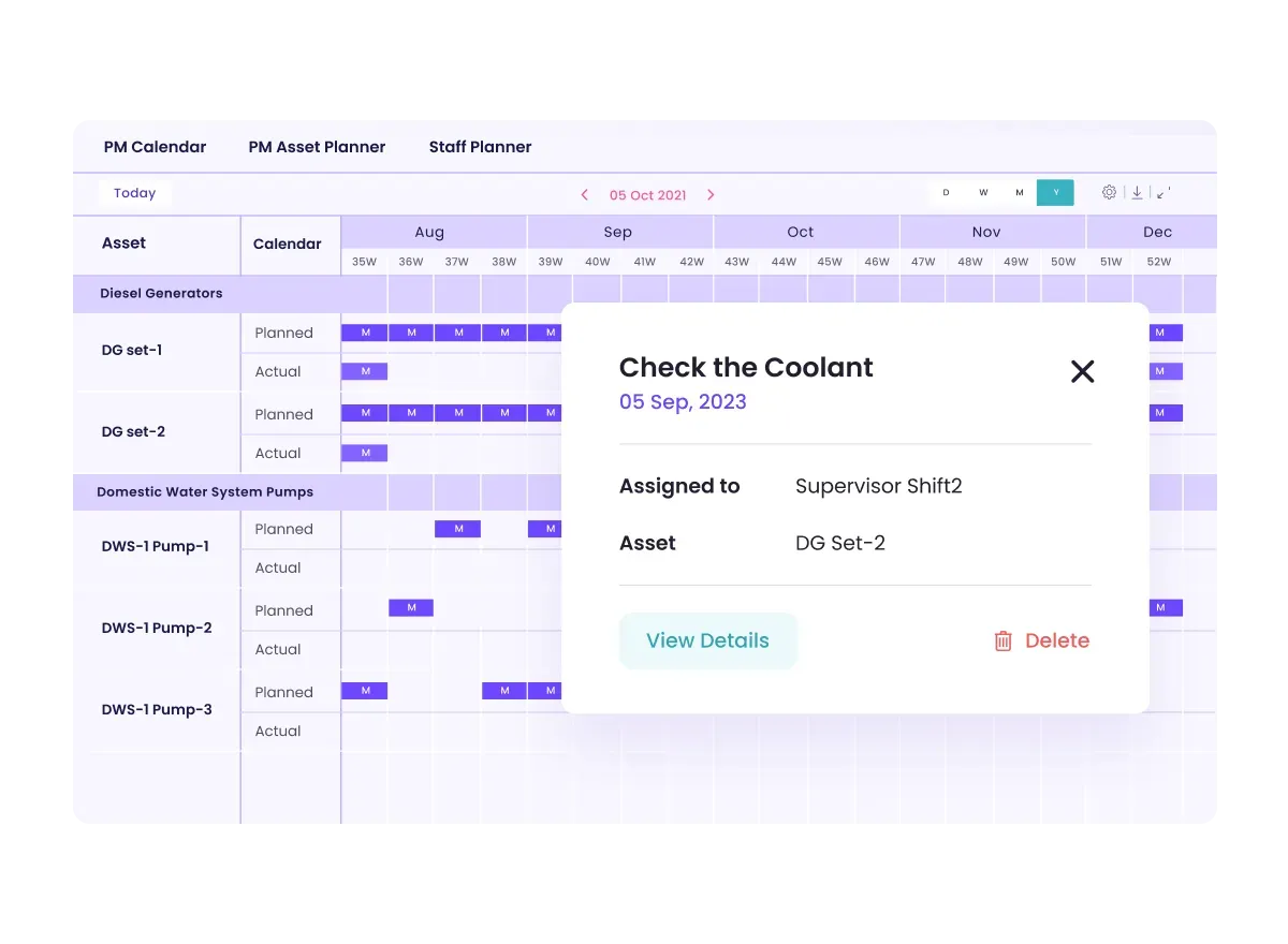 A Planned Maintenance System (PMS) is software that helps facilities teams schedule, assign, and track recurring maintenance tasks for equipment and infrastructure. It ensures tasks are performed at the right intervals—based on time, usage, or asset condition—so failures are prevented and asset life is extended.