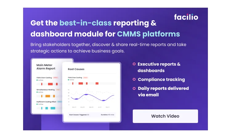 Using a smart Computerized Maintenance Management System (CMMS) like Facilio helps manage end-to-end asset lifecycles with 360-degree operational visibility and remote monitoring and control of equipment performance across locations in real-time.