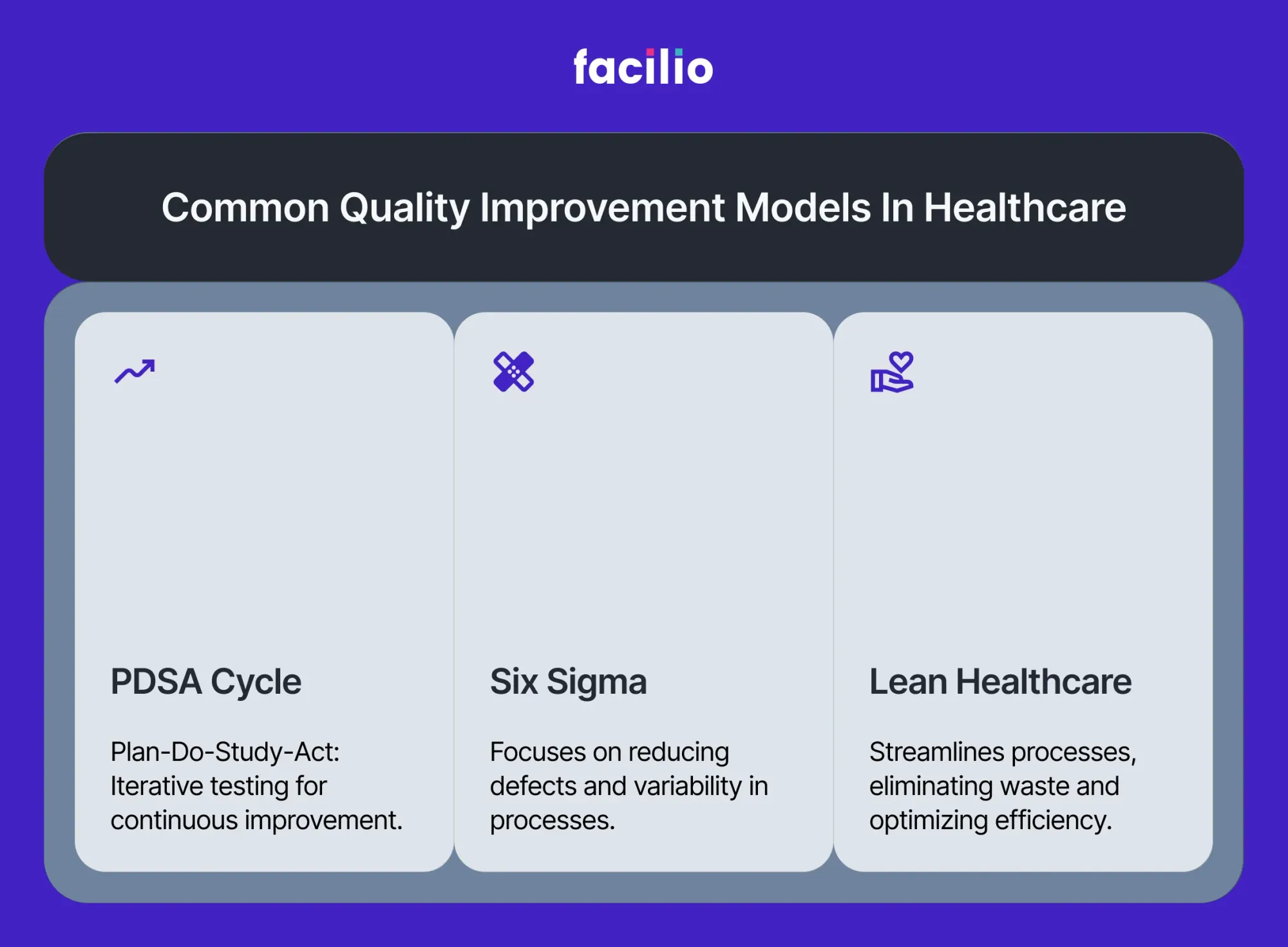 This is where quality improvement (QI) comes into play. It brings structured methods like Lean, Six Sigma, and PDSA cycles to reduce errors and streamline care. Quality management ensures that policies, standards, and compliance frameworks give these efforts direction and accountability. Together, they form the backbone of modern healthcare excellence.