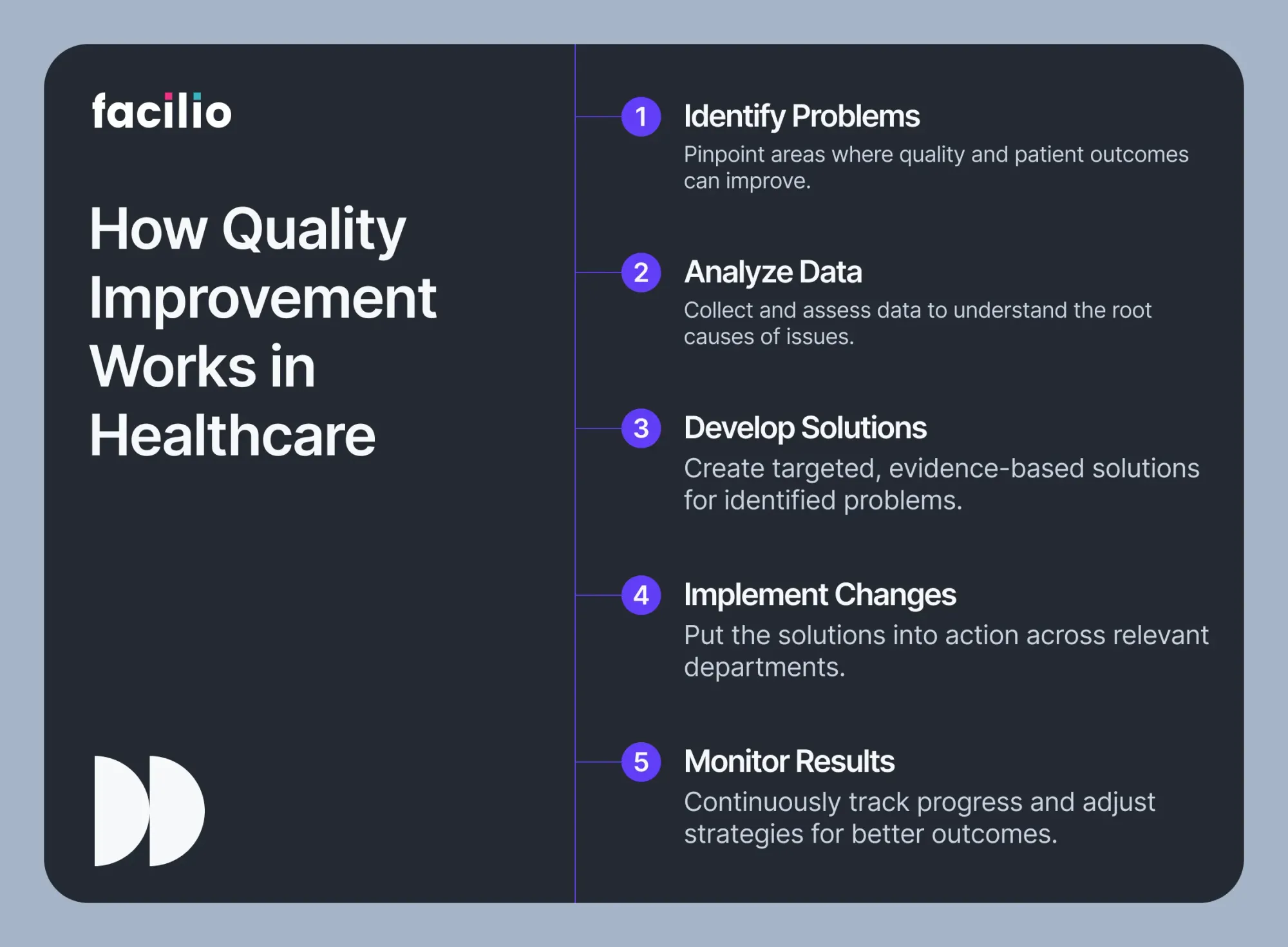 Building on this, the Centers for Medicare & Medicaid Services (CMS) describes QI as the process of standardizing structures and processes so that healthcare organizations can achieve predictable, reliable, and safe results.