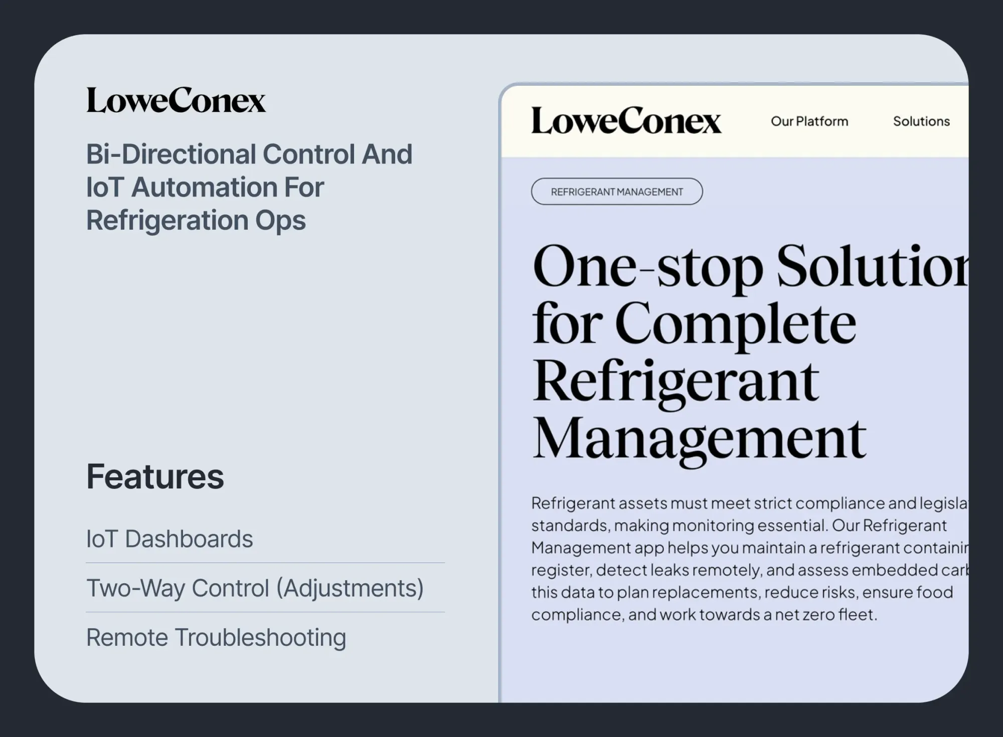 LoweConex offers cloud-based monitoring and energy control for refrigeration assets across retail and convenience stores. Their system supports remote command execution and integration with HVAC and lighting.