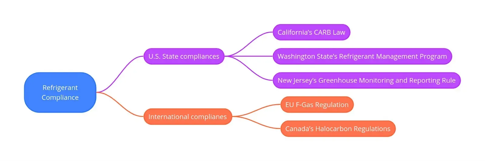 The EPA lays down over-arching regulations for every business using refrigerant and cooling systems in the US. At the same time, the States are also allowed to introduce their own laws for managing refrigerant compliance.
